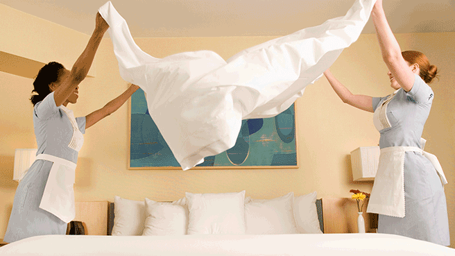 Housekeeping staff responsible for keeping facilities clean, safe and fresh-looking for employees or guests.